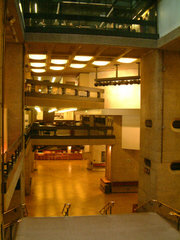 Listening to Bach's Christmas Oratorio Several of us, including a well-known arts administrator, arrived late for this excellent performance of Bach’s Christmas Oratorio. Originally scheduled to begin at 7.30 pm, the starting time had been brought forward by half an hour. In spite of admirable efforts by The Barbican’s administration, some of us got caught! Late arrival taught me two valuable lessons. One is obvious: always check and re-check starting times, especially in the cases of long concert programmes, which this was bound to be! My other discovery was both amazing and inspiring. Latecomers can watch concerts on a large TV screen with acceptable sound in the foyer (pictured); picture and sound are better than on many home TV sets. Yet I was the only one of the latecomers to bother with this facility: indeed, next to me on the TV bench was a middle aged couple, deep in conversation! I would have liked them to go somewhere else but they took no notice of me, nor - more to the point - of the wonderful music coming from the screen. Yet they had come to attend this concert! Agnes Kory see also musicOMH.com |
