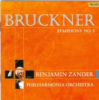 Philharmonia Orchestra/Benjamin Zander Telarc CD or SACD 80706 (2 CDs) [69 mins; 80 mins] I am no Brucknerian but enjoy listening to his symphonies occasionally. We own, treasure, and bring out from time to time, the veteran Bruckner specialist Gunter Wand's precious videoed accounts with the NDR Sinfonieorchester on TDK. The extra disc is an interesting 80 minutes of Zander's illustrated lecture (longer than the symphony itself). He tells us how his father whilst serving in the 1st World War would take himself off in quieter moments to read to himself his precious score of Bruckner's 5th, silently "performing it" The lecture is gripping, interesting for Zander's insights, moving for the personal connections with his amazing father, and humbling for its emphasis on large scale structure - the CD comes with a fascinating diagram that maps out the symphony as a virtual Cathedral in Sound. Zander's argument is dependent on key relationships that many of us would have to take on trust, being not blessed with perfect pitch nor a reliable musical memory to follow the modulations which are at the core of the workings of major symphonic creations of the period. The performance with the Philharmonia Orchestra recorded at Watford Coliseum is splendidly sonorous; you can sample tiny snippets of the performance and the talk HERE. Others will in due course provide comparative reviews of the niceties of tempi etc which engender much discussion amongst Bruckner afficionados, e.g. Steven Ritter. Peter Grahame Woolf