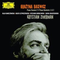 Grazyna Bacewicz Piano Sonata No. 2 Krystian Zimerman Deutsche Grammophon DG CD 477 8332 9 [2009, TT 64 mins] Zimerman said; "Today, CD creators get involved in extreme perfectionism, killing spontaneity, The provocative notes with this disc suggest that Grażyna Bacewicz (1909–1969) is less famous world-wide than she deserves because of political circumstances. Her seven string quartets "are entirely capable of standing comparison with Bartok's six". Krystian Zimerman has long championed Bacewicz's music and her centenary provided this opportunity. All the works are strongly crafted and impressive to hear. Most interesting, for us, was the second quintet (1965) following a period in which she "made a cautious attempt to adopt a new 'avant garde' approach". Bacewicz characterised her music as "- - a lot happens, it's aggressive and at the same time lyrical". Definitely worth exploring, maybe in our conservatories? The chosen sonata (1953) has long held a place in Krystian Zimerman's repertoire and is always well received. The 2nd quintet is fresh and experimental, though I had doubts about her use of sweeping piano glissandi. Very well prepared and recorded in the Karol Szymanowski Academy, Katowicz, this is a CD to explore (though at £14 from Amazon some may need to wait...) Peter Grahame Woolf |