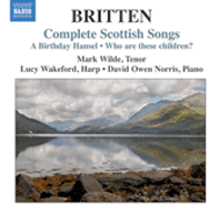 Lucy Wakeford, Mark Wilde, David Owen Norris Naxos 8.572706 [75 mins] - - the title poem of Britten's last song cycle, Who are these children? - - is to Britten vividly symbolic of wrenching themes that seemed both to disturb his senses and stir his creative energy his whole life- - These songs to poems by Scottish poet William Soutar leave us with unforgettable impressions and questions. Pears' performance of the 12 songs, with Britten at the piano at Aldeburgh in 1971 is another gem. And it's the only one available. (Unfortunately, no texts are provided - - an unacceptable omission (ClassicsToday) The most rewarding Britten compilation I have heard in years, numerous fully characteristic mature songs which have never got firmly into the regular repertoire; many of them unfamiliar to me, brought together in high quality recording and convenient presentation. Benjamin Britten’s A Birthday Hansel with harp, to texts by Robert Burns, was his final song-cycle. Who are these children? is a major late cycle to poems by William Soutar, bringing together darkly dramatic musical depictions of wartime life with protest songs revisiting the composer’s youth. There are later settings of three of the Burns poems arr. Colin Matthews, making for 34 tracks in all, a real treasure. Scottish tenor Mark Wilde has the measure of it all. I like his direct manner and timbre and he has the huge advantage of being a native Scot. The texts (complete with glossary of translations into English !) are essential accompaniments for listening; print them out from the Naxos website and enjoy the recital in comfort with your best quality sound. Peter Grahame Woolf |