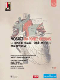Mozart: Da Ponte Operas Le nozze di Figaro Ildebrando D'Arcangelo (Figaro), Anna Netrebko (Susanna), Bo Skovhus (Count), Dorothea Röschmann (Countess), Christine Schäfer (Cherubino), Marie McLaughlin (Marcellina), Franz-Josef Selig (Bartolo), Patrick Henckens (Basilio), Oliver Ringelhahn (Curzio), Florian Boesch (Antonio), Eva Liebau (Barbarina) Salzburg Festival 2006 Unitel Classica/EuroArts 2058818 This re-issue is worth considering by readers who may have missed the original M22 releases (q.v. our All of them were radical and challenging, some at the time seemed perverse - we didn't take to the Don Giovanni, nor to the contemporary crudities of Goth's take on Cosi (sample the girls, drunk and the worse for wear on video in "Ah, guarda sorella")... The Figaro, however, endures well and is a classic of intelligent opera re-appraisal. For many of us Susanna is the pivotal character, and is certainly so here, but she is portrayed as a much more complex person in Claus Goth's perception, as Anna Netrebko explains in the invaluable Making of Le nozze di Figaro extra; a woman who is able to acknowledge and respond to the attraction of two men at the same time, which she accepts is how life is in truth for women too... Subtle sexuality is rife in this version, not least in the Act 2 scene where Cherubino, after singing Voi che sapete, is being dressed in disguise; an amorous threesome... The Count is a far more sympathetic figure than usually, " - - neurotic and guilt-ridden and seems genuinely to be in love with Susanna - - Harnoncourt mines the score for its deepest emotional resonances". It is a dark version - "Harnoncourt and director Claus Guth have turned this most revolutionary of comedies into an internalised psychodrama of almost unendurable intensity. Only Anna Netrebko's Susanna possesses any kind of rationality in this world of clashing neuroses. Cherub, a silent winged angelic figure, meanwhile, weaves his way among the characters, surveying their behaviour." [Tim Ashley in The Guardian] & "Not your Grandma's Figaro - -