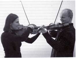 Manto & Madrigals Rainer Kilius Ó min flaskan friða ECM New Series 2150 Recorded May 2009 This carefully composed anthology of contemporary pieces for violin and viola stakes a claim to serious attention for yet another unusual chamber music combination (q.v. violin duo and Clarinet/violin/piano trio). It occurred to me whilst listening that whereas our two-sided brain is adept at attending to two things at once (not because of its macro-physical structure) things get more complicated with more parts going on simultaneously and choices of attention ensue. Are you always clear about second violin & viola in a string quartet? Conductors try to balance orchestras to help listeners prioritise attention. We have a general preference for chamber music - one to a part - for home listening, and maybe the above thought explains why a good duo anthology can be especially satisfying; and this is indeed one such. A marvellous programme, perfectly organised, played and recorded. The only difficulty I have is with ECM's sometimes dour cover images; instead of this one (? a landscape or a man with his tongue out?) I've preferred Keith Pattison's of the artists from an inside page, above. Peter Grahame Woolf