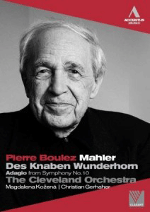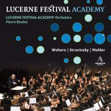 Symphony No. 6 in A minor Lucerne Festival Academy Orchestra / Pierre Boulez Accentus Music 2-CDs: ACC30230 Previously available on sound-only CD, these great Mahler performances, produced and directed by William Cosel, were filmed during live performances in February 2010 at Cleveland, Ohio's elegant Severance Hall and shown on telecast in May. They challenge all the competition and are surely far better on DVD, filmed with discretion and good taste (c.p. the excesses of, e.g. the misconceived Endellion Quartet's Beethoven DVD with "cutting to rhythm and movement" !). Boulez, batonless and with economical getures is - with his Lucerne colleague Claudio Abbado - amongst the few conductors who conduct the orchestra , not the audience, so that seeing him never palls or irritates. For a fuller appreciation of these performances, see Anne Ozorio. We have reported attendance at Lucerne's KKL for some of Pierre Boulez's 2010 rehearsals of his Lucerne Festival Academy Orchestra. Their 2010 repertoire was recorded live during rehearsals and concerts of the Academy in summer 2010. The first fruits of that season are now available on a double-CD of exceptional interest and accomplishment. With his students rigorously selected (only one was accepted from the UK !) there was no compromise in standards, and the commitment of these young musicians can be felt on this release. Both are recommended unreservedly, and they complement each other nicely. Peter Grahame Woolf