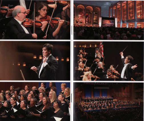 The present DVD "works" for us (as another recent one from Leipzig hadn't) including the ventures outside to the overflow audience in the Lincoln Park courtyard, and occasional shots of New York skyline, which support the sense of occasion and do not break concentration... We found it riveting and moving, especially in the choral finale with the so-fitting words projected as subtitles.
