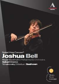 The tension of the orchestra, every player's attention honed to becoming part of each masterpiece, is artfully captured, and, most interestingly, the expressions and gestures of the conductor Sakari Oramo gives a the viewer unique insight to the creative process, whilst bringing his vision of these works to life. Highlights are close ups of orchestral soloists - in particular the stunning bassoon solo during the opening of the Sibelius. As one would expect at a ‘Nobel’ concert the playing is top notch. Joshua Bell dazzles, easily navigating the virtuosic passages, although the physical exertion this requires can be seen through beads of sweat- Bell really is giving his all. My only criticism is precisely this - every note is beautiful (the occasional note which is not quite on pitch is only to be expected in a live performance); sometimes I would like to hear more grit and depth to his tone rather than just luminosity (especially in the first movement). That said, Bell does a superb job of painting different colours and tailoring phrasing to perfection. It is good to hear he is a believer in 19th century performance practice and not afraid to use portamenti to expressive effect. An added bonus is the addition of interviews with the performers. In particular the viewer is lucky enough to hear the story behind Bell’s violin - the so called ‘Huberman Strad’ - along with some close up shots of this famed instrument. A treat for all violin enthusiasts. Anna Michel |