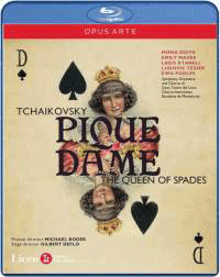 Tchaikovsky Pique Dame Misha Didyk (Hermann), Emily Magee (Lisa), Lado Ataneli (Count Tomsky), Ludovic Tézier (Prince Yeletsky), Elena Zaremba (Polina), Ewa Podles (Countess), Mikhaïl Vekua (Chaplitsky), Francisco Vas (Chekalinsky) & Claudia Schneider (Masha) Opus Arte - OABD7085D (Blu-ray) A Barcelona production (2011) which we have found almost impossible to watch on DVD - the singers seem to shout at us as if we are too close in the huge opera house itself. A tricky opera to bring off, we were most impressed by it at Stuttgart in 1999 (not filmed) and at Welsh National Opera. Going back to the old St Petersburg DVD (with a very youthful Gergiev in the pit) it was easy to discount the dullish filming and enjoy the fairly traditional performance. But, consulting the internet, it seems that the best bet for the present is the Graham Vick Glyndebourne production filmed in 1992. |