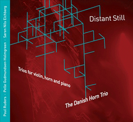 Unusual chamber music combinations are all the rage (c.f. the Vedehrs' 200 trios for violin, clarinet & piano) and here are three commissions by a Danish violin, horn and piano trio, their disc launched in Canterbury earlier this month. I have to say that the other commissions here, from far better known composers, are less engaging, and require rehearing. Gudmundsen-Holmgreen's is introverted to the extreme - "quiet, searching music" in which the notes writer Henrik Friis finds "an ambivalent world, with the composer's pecuiar humour lurking in the background"; the violinist has to vocalise too... Peter Grahame Woolf