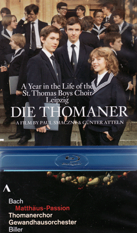 Bach St Matthew Passion Accentus ACC 10212 & 10256 A fine account of the Matthew Passion in JS Bach's own church in Leipzig, greatly enhanced by its coupling with an excellent documentary about the St Thomas' schoolboys, from whom are drawn by audition the prestigious choir. You come to see the actual performance with a feeling that you have got to know some of the boys, and their arduous life as boarding schoolboys who get a fine musical education based upon preparing works of Bach for performance evey week. We get great respect for the tireless coach and conductor Georg Christoph Biller, and taken together these DVDs will give you a new appreciation of the Matthew Passion as you identify with the audience, many of them parents of the boy scholars. Recommended even though you've probably got other versions. Peter Grahame Woolf |