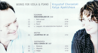Pict R from interview on ZIBB Britten, Schumann & Shostakovich Works for Viola & Piano Britten: Lachrymae for viola & piano, Op. 48 Champs Hill Records: CHRCD029 A benchmark recording of two of the most important cotemporary works for viola and piano, both of them needing repeated hearings and therefore ideal for coupling on a CD for connoisseurs. It has to be conceded that nowadays young musicians are equalling and indeed challenging the famous "greats" of yesteryear and the iconic first recordings of keyworks. Champs Hill in Sussex seems to have become an ideal recording venue, with warm supportive acoustics and the most skilled engineers on hand. These are rewarding accounts of "difficult" music; you have to wait until the end for Dowland's Lachrymae upon which Britten's meditation is based - it is intimate music best heard, maybe, in the quiet and privacy of one's own home. And the same can be said about Shostakovich's introverted Viola Sonata, his last work. A word about images; as for the German cellist, Johannes Moser (above), I have rejected this CD's cover image of the duo, and another on the back, in favour of one (albeit pale) which shows the two friends relating to each other more naturally, which I prefer... Peter Grahame Woolf
