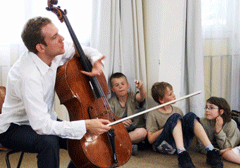 Britten & Shostakovich Dmitri Shostakovich, Concerto No 1 Johannes Moser cello Hänssler Classic: 98643 A magnificent coupling, superbly accomplished by all concerned; cellist, conductor and technical team. A recording of two key 20C cello concertos which probably supercedes the classic recordings with their dedicatee, Rostropovich. Not too sure about Hänssler's cover image montage; why a cello with four strings but So I have chosen from Johannes Moser's website a delightful 'outreach' teaching picture...Occasionally one wonders if Moser's cello is just a little too forward, but that is easily forgiven. A strong recommendation, one that we have played twice through; definitely necessary for the Britten !
