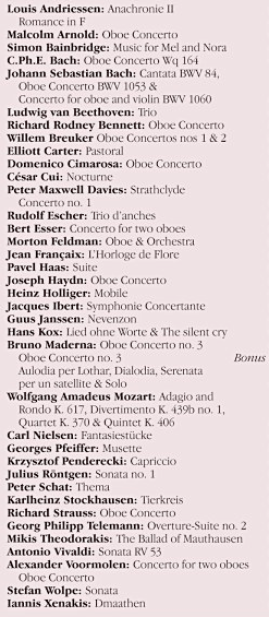 Oboe Classics CC2024 http://www.oboeclassics.com/Hanbox.htm 9 cds and 2 dvds (c.11 hours, c. £50) A milestone in the history of recorded music. This great oboist and musician has been honoured by a huge team of colleagues and well-wishers for his 70th birthday in a manner surely unprecedented. Hans de Vries's prolific radio recordings are most of them from live performances (which I prefer) and many of them taken from preserved private cassette collections. They have been refurbished when necessary and made available with the cooperation of copyright holders for the public good, and particularly as a resource for oboists and lovers of the instrument. I had expected to play both the DVDs and sample the CDs, but they are so compelling that we will be listening to the whole archive over the next week or two. Many of the works are otherwise unavailable and would otherwise not feature on their composers' future discographies. By coincidence, they have come my way at the same time that our own leading British oboist Nicholas Daniel (who recently received the Queen’s Medal for Music for his contribution to British musical life) will be celebrating his 50th birthday at Kings Place, London in two concerts with friends and family at Kings Place; maybe de Vries will be amongst those invited to share the occasion? This is a recorded feast compiled by oboist Peter Bree of music old and new featuring the oboe, one which will refresh memories and surely guide some youngsters into opting to study this favourite instrument, whose active repertoire extendss back to the 18th Century. A boxed collection of the year to be considered for purchase by everyone inerested in the oboe and in the history of broadcasting of classical and conteporary music of the period. The documentation and whole presentation are excellent. Peter Grahame Woolf |