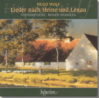 Wolf - Heine & Lenau songs Frage nicht. Herbst. Herbstentschlus. Nachtliche Wanderung. Traurige Wege. Sic haben heut' abend Gesellschaft; Ich stand in dunkeln Traumen; Das ist em n Brausen und Heulen; Aus meinen grossen Schmerzen; Mir traurnte von einem Ktinigskind; Mein Liebchen, wir sassen beisammen; Es blasen die blauen Husaren; Du bist wie eine Blume; Wenn ich in deine Augen seh'; Madchen mit dem roten Miindchen; Wo ich bin, mich rings umdunkelt; Es war em n alter KOnig; Mit schwarzen SegeIn; Spatherbstnebel; Ernst ist der Frithling; Wie des Mondes Abbild zittert; Sterne mit den gold'nen Fiisschen; Wo wird einst des Wandermiiden. Stephan Genz & Roger Vignoles Hyperion Helios CDA67934 If you too missed this recital of mainly early Wolf songs (1876-1880) when it was first released, do catch up with it on this Helios reduced price re-release. The word settings are excellent, Genz has an attractive individual timbre and his German is flawless. The partnership with Vignoles is ideal. 25 songs with the original comprehensive notes by Roger Vignoles. A bargain now! Peter Grahame Woolf q.v. the original review in Gramophone. |