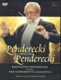Penderecki conducts Penderecki Sinfonietta per archi Capriccio for oboe & 11 strings - Mariusz Pedzialek (oboe) Viola Concerto -Tabea Zimmerman (viola) Concerto for Flute & Chamber Orchestra - Irena Grafenauer (flute) The Sinfonietta Cracovia, Krzysztof Penderecki Digital Classics - DVD1036DC Here is a very useful conspectus of Krystof Penderecki's orchestral music, studio recordings for TV Television Metropolitana made in Frankfurt 1994. A bit rudimentary in presentation, without any insert booklet, but with interesting introductions to each piece by the composer on screen, with English subtitles. It would not play on one of my DVD machines, but is fine on another and on the computer. None of these works has had significant exposure in UK, and there has been some disillusionment with Penderecki's later music which changed radically after the vogue for his earlier pieces with dense tone clusters and, particularly, the St Luke Passion. The flute concerto is alternatively for clarinet. All three concertante works are relatively concise (c. 70 mins total time) and distinctive; each soloist is very fine. It is particularly gratifying to see violist Tabea Zimmerman in a major work, having enjoyed her recent appearance in London as a member of the extraordinary Arcanto Quartet. Recommended. Peter Grahame Woolf |