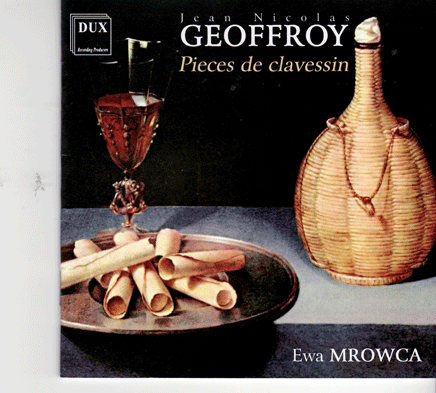 JEAN NICOLAS GEOFFROY Pieces de clavessin Suitte en c sol ut b mol; Suitte en c sol ut; Ewa Mrowca – harpsichord DUX 0137 - 75 mins A scholarly and musicianly release of keyboard music by a "somewhat forgotten and mysterious" composer (1633–1694) whose manuscripts are fortunately preserved in the Bibliotheque National de France. They have been researched deeply by this Polish harpsichordist who also studied in London at the Guildhall and at Basle. She plays a copy of a French harpsichord (Donzelague/Hungeberg) but what will be more important for collectors is that she interprets this interesting music with superb style, making this a disc of 17C French harpsichord music to treasure. The presentation, as with many latterly from Dux, is exemplary, with a full background essay by the artist herself (who seems to be multilingual) and tells us that the music is "full of colour, charming with nuances and tints, caressing the ear with subtleness of ornamentaton, restoring J N Geoffroy amongst superior representatives of the great 17 C French harpsichord school". Definitely a disc to search out and relish. Peter Grahame Woolf |