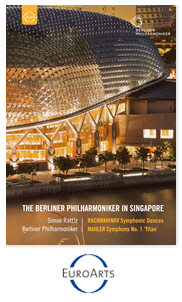 Mahler & Rachmaninov (Berlin PO/Rattle) Rachmaninov Symphonic Dances & Mahler 1st Symphony “Titan” Berlin PO/Rattle in Singapore EuroArts 2058908 BERLIN PHILHARMONIC IN SINGAPORE/Simon Recorded live at Esplanade Theatres on the Bay, Singapore, November 2010 A wonderful account of this problematic Mahler "warhorse" on DVD; the best of many 2nds I've heard or seen (if memory doesn't play tricks?). We took it in two halves; straight through would have been too much (as it can be in concert), especially with the lengthy finale with its over-the-top orchestral excesses. We had it on Blue-ray, but were not able to watch it in 3D as proclaimed on the cover - it's hard to keep up witht the technological developments. Impossible to imagine Mahler writing it at white heat in his little composing hut at Wörthsee. The filming and sound quality are together one of the finest we've ever had and - dare I insist ? - beats the live experience, in which the huge finale always raises doubts. Rachmaninov's last major work is an ideal coupling, better taken first as listed on the DVD. This may well become your top demonstration disc for your proud new equipment. And try to hook the childen with the bitter-sweet Frère Jacques movement. Peter Grahame Woolf |