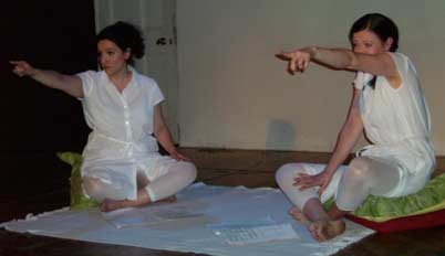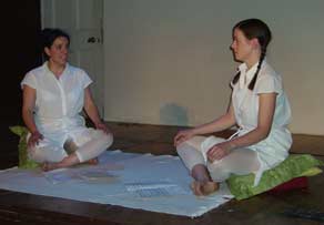 The two singers must sit on the floor facing each other and at eye level with their audience. Whilst they have considerable freedom in shaping the dynamics, their movements are precisely notated.