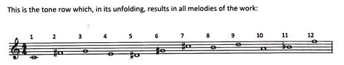 The composer’s notes include details of the tone row, which, in its unfolding, results in all melodies of the work.