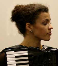 Opportunities for fine young musicians to perform in unusual London venues proliferate. I was keen to hear again this gifted accordionist*, who made such a big impression at the Park Lane Series in January. The elegant concert room at The Irish Club is ideal for such an event as this, and it was well attended. Oddly, no programme is supplied, so the artists have to make their own introductions. Ksenija Sidorova deputised effectively for the glass armonica in the Adagio and Rondo, Mozart's last chamber work.[Click on my link to hear it !]. That is far better than using the piano. Escape Velocity is a splendid virtuoso addition to the accordion's chamber music repertoire, and through 2009 Ksenija Sidorova has been performing it widely with the Brooks String Quartet. It went down well with a non-new music specialist audience. Next was an attractive tango-derived piece from a French composer - sorry, I didn't catch the details of the announcement - and the hour's music ended with Tango Sensations, Piazolla's last work, which had been premiered and recorded with the Kronos Quartet. Peter Grahame Woolf * - one of the winners of the 'Friends of the Royal Academy of Music Wigmore Award' competition - Ksenija Sidorova was also awarded the audience prize. "The beauty of such a competition is that the competitors are playing all kinds of instruments. That the accordion is accepted into such circles is testimony to the huge steps the accordion has made in the world of classical and contemporary serious music in recent years." A new series of free classical concerts, in the intimate setting of the wooden beamed gallery at Foyles Charing Cross Road, has been announced today. [Editor] |