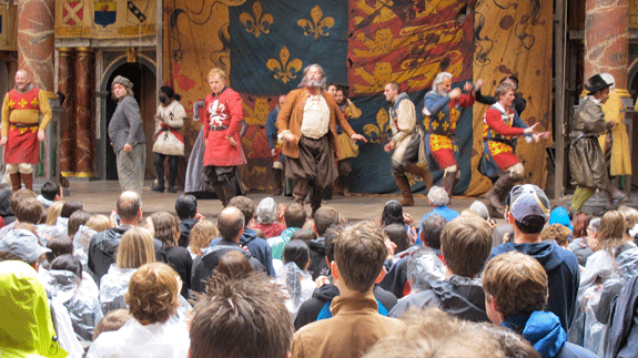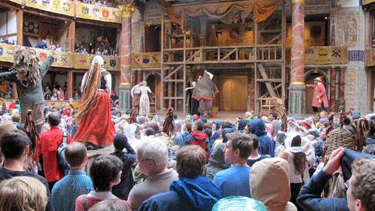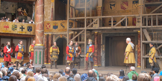 Shakespeare Henry IV Henry IV Part 1 & Part 2 Globe Theatre, London Roger Allam Falstaff with Jamie Parker Prince Hal Directed by Dominic Dromgoole Seeing both parts of Dominic Dromgoole's Henry IV together (2.00 - 10.30 pm) was daunting in prospect but proved the right way to take them [See schedule]. The Globe audience was responsive as ever and seemed to take in more of the often intricate dialogue and poetry than I could have done without the aid of the text - not so much for hearing, which was mainly fine, but so as to make better sense of the disputatious arguments amongst low-lifers and the power factions in those civil warring times (at the end, domestic relief was anticipated by looking forward to a campaign in France...). The groundlings,amongst whom a lively mummers version was staged by way of prologue (1 below) took a heavy shower in good part (2) but the weather was mostly kind. Roger Allam’s magnificent Falstaff took centre stage whenever he appeared; not as fat as the script gave him to be, subtle in maintaining his precarious authority amongst his hangers-on, rising to each of his big moments (e.g. the Honour speech) and giving full value to his every utterance, especially at the bleak, self-deluding end of Part II. Jamie Parker was a winning heir-apparent sowing his wild oats, but his dialogue with his dying father was a high point of the latter play, preparing us for his transformation to a responsible adult and and monarch, whose cruel repudiation of his playmates brought our day to a sombre ending, with no one convinced by Falstaff's forlorn hope that the new King would "send for me privately"... Allam and Parker were the lynch pins who dominated their every appearances on stage, but all the casting (with plenty of doubling to keep them busy) was good and the actors' endurance was as admirable as was ours! The whole theatre was transformed by designer Jonathan Fensom with banners that surround the playing space. There were some longuers in Part 2, and some of the business with Shallow and Silent was not quite as funny as it would have been to Elizabethans. Indeed, whereas Part 1 will make a fine evening on its own, I am less sure if Part 2 would do so? The short musical interludes, often during scene changes, including drinking songs and ballads, helped the atmosphere, with sackbuts and splendid drumming by Claire van Kampen's versatile instrumentalists helping to give the whole an additional feeling of authenticity, and support for the roistering dance to take leave of an audience (3) that was in no hurry to go home. Look forward to a DVD - that of Romeo & Juliet (with optional subtitles) is superb and Love's Labour's Lost is also available. Peter Grahame Woolf