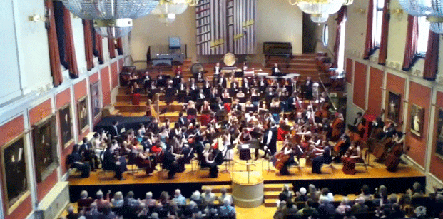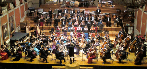 Debussy Ravel Laurie Bamon Silent Roads Royal Academy of Music Duke’s Hall, London A remarkable concert by one of UK's finest student orchestras, fully professional standards enhanced by the excellent ambience of Dukes Hall and an excited audience of supporters. A new student composition, under student conductor Alissa Firsova, was more a conceptual study than music per se (poetical references to silence, slowness etc...) - that is the way with training (in the visual arts too) these days. The same has been urged against Harvey's "pure land" with his familiar Buddhist pre-occupations [see The two French ballet scores were each, in their very different ways, thrilling, and it is wonderful that the best student orchestras can now match professional symphony orchestras. Brabbins was cheered to the rafters by the orchestra; this was altogether a more satisfying concert than most of those to be heard in our chief London concert halls. Peter Grahame Woolf *Jonathan Harvey’s … towards a pure land is an abstract construction of some seventeen minutes duration. The composer’s own programme note - - betrayed the workings of a confused mind - - no more than verbal posturing to mask a lack of substance? With precious little fluidity in evidence the work sat in its own state of stasis, seemingly arising from nothing – to which it would eventually return - - limited by trying to make much out of too little - - stuck at a constant ppp or mf – which succeeded in de-humanising the music, making it mere sound. - - The Proms audience, many of whom around me also searched in vain for much meaningful substance, gave the work a polite if none too enthusiastic reception [Seen&Heard, Proms 2006] Mahler's 5th at RAM Academy Concert Orchestra/Semyon Bychkov Duke's Hall, 11 May 2012 The same week that we enjoyed from LSO an exceptional Bartok performance in a concert of a lifetime, RAM students came up with a stupendous Mahler V, the huge Academy Concert Orchestra meticulously prepared by Semyon Bychkov [Pictured in rehearsal], a great Mahlerian. Tempi were perfectly judged (e.g. the Adagietto not too slow as often) and from upstairs the overwhelming sound of one of the largest orchestras ever heard there was unforgettable. I speak with some experience, as I was probably the only audience member to have heard one of the first Mahler symphony performances in England, No 5 with the LPO under Heinz Unger. - - soon after the War in London's Cambridge Theatre, with the LPO struggling manfully with this strange and demanding music - at rehearsal it proved hard for their first trumpeter, getting increasingly red-faced, to get beyond the opening call to attention to the satisfaction of Heinz Unger - - No worries for Danilo Oliveira at RAM - the brass section was resplendent and completely reliable, and indeed each section of the orchestra acquitted itself magnificently, to roars of applause as Bychkov singled out each in turn [see above]. I would trust that the live recording being made might find its way onto an RAM CD? It wouldn't shrink in the least by comparison with the standard professional recordings. Peter Grahame Woolf |