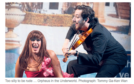 Orpheus in the Underworld Offenbach himself was really nowhere! Scottish Opera/Northern Ireland Opera joint production The Young Vic, London - 30 November 2011 Crémieux/Halévy/Offenbach's 1858 musical satire of Napoleon III's Paris, a tale of an unhappily married Orpheus' journey to the underworld, has been updated for a 24-venues tour of Northern Ireland and to the remotest corners of Scotland. The characters progress from one ridiculous scenario to the next, replete with the crudest simulated copulations and a backdrop with a huge anus which was marked "censored" by the on stage narrator Public Opinion. The stage direction was good, with variety in the sets and often amusing characterisations. The singing was adequate, with Brendan Collins' Jupiter outstanding; it was good also to catch up with one of our contributors amongst the cast ! The show culminated with the famous 'cancan', which needs the traditional costumes and was a flop because of the evening's musical limitations. Offenbach himself was really nowhere! The pianist who accompanied the evening on an upright piano played all the notes on the page before her competently, but with no flair or imagination whatsoever. ** Chamber versions of opera in small venues can be fully satisfying with reduced orchestrations if those are tackled with a will; the colleges are training pianists of huge ability, able to extemporise and enhance given piano scores, as used to be common practice. Peter Grahame Woolf *Scottish Opera and Northern Ireland Opera revels in the slapstick, doggerel, innuendo, puns and damning political commentary ** Recent examples of good practice have been Opera Up Close's La Bohème at the Cock in Kilburn "Andrew Charity conducts from the piano with genuine sensitivity throughout - a runaway success extended for a third month"; Opera at Home's Mozart in Greenwich with the 'orchestra' reduced to violin and piano (an electric upright with convincing registrations) with remarkable success; - - lightly mordant operetta utterly ruined by a clod-footed production - accompanying on piano, MD Ruth Wilkinson was a little timid...[This is London] Bremner’s surprisingly unsubtle libretto - - this work’s bewitching charm was never going to take wing when supported, as here, by just a piano plus an off-stage violin- - crude direction - plus a script that ran out of ideas half way through - made one glad to escape [Evening Standard]