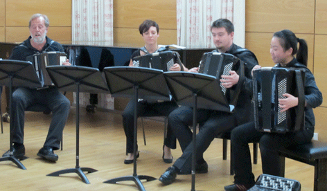 The Academy students followed their concert with a demonstration performance class with more mature students attending. Constructively criticising performances with ideas for general shaping of a piece, phrasing and tempo of works is an essential part of student training. They are required to give constructive analysis to enhance performance of works they may not have played themselves. After a tea-break students gave a further concert of mainly modern solo accordion and chamber works, finishing with a magnificent performance of a highly emotional and descriptive modern work, Viktor Vlasov’s ‘Gulag’ by past student Milos Milivojevic. In the final session of the day entitled ‘Raising playing standards in the UK’ Owen Murray began by pointing out how the majority of his students in recent years came from abroad. Success in obtaining students of suitable standard for Academy entrance from the UK had been small over the years and non-existent recently. On the other hand standards of entrants from overseas had gone up and up. The main bar for overseas students was sources of funding. Mr Romano Viazzani was invited by Owen Murray to lead a discussion. Owen Murray pointed out the enormous difficulty he had had over the years, first with the Associated Board of the Royal Schools and then with the Trinity and Guilds in getting the adoption of an approved syllabus with the very great advantages in musical education for young accordionists that this brings. Having finally got a syllabus adopted by Trinity and Guilds a year or so ago it has now been cut to an extent below requirements, through lack of support. A major idea put forward by Romano Viazzani to improve the situation was the possibility of forming an ‘Accordion Teachers Association.’ Such an Association would have the principal aim of raising the number and standard of young people learning to play the accordion. It would be open to all who practice teaching the accordion. It would have a constitution and seek funding. Its aim would be pursued by organising events for teachers in different parts of the country, courses, demonstrations, discussions of problems with the syllabus and repertoire. It would seek to raise sufficient funds to acquire a number of small instruments for hire for children’s use. A major problem identified was that small accordions were very expensive instruments for parents to acquire for an initial few years when progress of a child may be uncertain. Charity status of the society would be required to obtain sponsorship on a sufficient scale to run a scheme for the hiring of instruments on a reasonable scale. Many problems were discussed including the decline in musical instrument teaching generally through competition from other activities. The meeting left the matter after discussion of many issues for Romano Viazzani to make further soundings of teachers and schools and to convene a further meeting with the idea of a teachers association put into a concrete set of proposals. It is appropriate to conclude this report with sincere congratulations to Owen Murray on his outstanding achievement over 25 years. The Accordion Department at RAM is small but Owen has successfully integrated it into the life of the Academy and made it one of the best places to study the accordion at conservatoire level in the world. He has won great respect from his colleagues and admiration from his students. Out of 21 graduates from his department 10 have graduated with distinction and seven have gone on to achieve the prestigious Diploma of the Royal Academy. His pupils have also received many prizes in the world of classical music and played with many front rank orchestras and in numerous festivals and events which have brought recognition for the accordion. Many congratulations to Owen from all his students and all accordionists. Roland Williams See also Versatile Accordion: http://www.accordions.com/index/squ/archives/1112/versatile.htm |