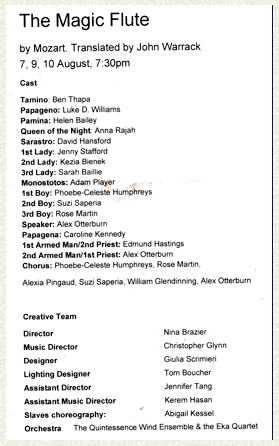 Christopher Glynn and his small band, invisible underneath the gallery to those who chose that vantage point, kept it moving at just the right tempo, and one felt sorry for people unable to watch his deft directing, which had to cope with the deserved applause after nearly every item. There was no feeling of loss for the missing instruments from a fully scored account in major opera houses; fewer these days with period orchestras than in c.1950 when I enjoyed a dress rehearsal by Furtwangler in Salzburg at which four Queen of the Night's Ladies were still competing for the three parts... The acoustics at Arcola were good, in that the cast, often just a few feet away, didn't moderate their tone and one didn't wish they had done so. The mini-ensembles of the Queen's ladies, boys (girls) and Sarastro's disciples were well selected, the three ladies especially well cast and popular with the audience. There was a sense of sly, complicit fun which was irresistible, yet the trials in the second act had a full weight of seriousness led by the youthful and dignified Sarastro, whose sonorous bass, which had no problem in the depths, as likewise did his royal counterpart deliver her coloratura with confidence. With a few more years development, Anna Rajah should be taking her rare skills to major opera houses here and abroad. I admired the rapport of lovers Ben Thapa and Helen Bailey, forcibly separated most of the time; Helen expressed in perfectly phrased arias the intensity of anguish imposed by her mother. For the Trials, we did not miss the semblances of fire and water and shared the couple's relief when their ordeals ended, nicely counterpointed by Scout Papageno and his pretty lttle eponymous Girl Guide. Monostotos was the more menacing for beng excused the usual blacking up, and John Warrack's translation, perfectly audible throughout, enhanced our involvement, with no one missing the German original. Moments like when the animals were forced to dance were choreographed simply and cleverly by Nina Brazier and Abigail Kessler, and the whole Creative Team collaborated to make this a memorable Flute for us and doubtless for all the participants. This production might well be considered (quickly !) for a DVD, to set alongside those from major productions. A live filming at the Arcola would make its mark comparable to those emanating from Shakespeare's Globe without scenery. We were forbidden to photograph for "copyright" reasons (?) which begin to feel anachronistic in these times of silent invisible filming; some short clips for YouTube would begin to put the enterprising Ryedale Festival Opera and Arcola Theatre on the map? Peter Grahame Woolf The photo above, the only one I've seen, comes from Evening Standard, whose review stance is diametrically opposite to ours.
